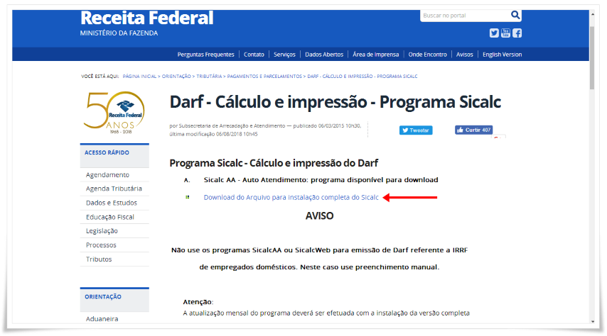 1- Baixe o SiCalc atualizado no site da Receita Federal e instale em seu